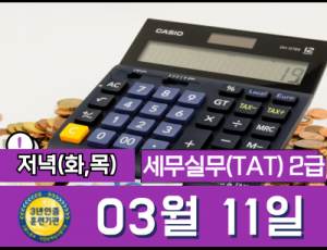 전산세무실무(TAT) 2급 자격증       18:50~21:40 (화,목) 저녁