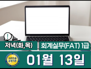 전산회계실무(FAT) 1급 자격증       18:50~21:40 (화,목) 저녁