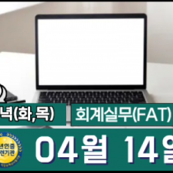 국민내일배움카드(평일저녁) > 사무자동화(OA) 전산회계실무(FAT) 1급 자격증       18:50~21:40 (화,목) 저녁 수강신청 |
