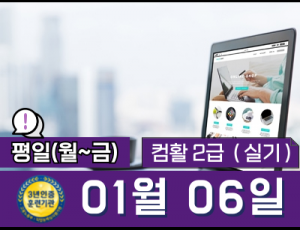 컴퓨터활용능력 2급(실기) 자격증   15:00~18:00 (월~금) 오후