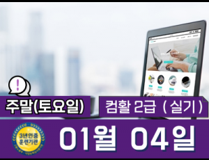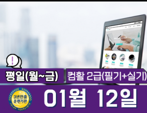 컴퓨터활용능력 2급(실기) 자격증   09:00~12:00 (토요일, 오전)
