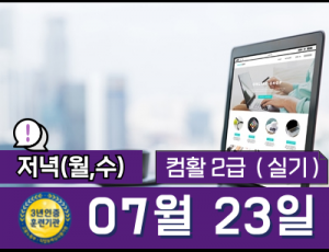 컴퓨터활용능력 2급(실기) 자격증   15:30~18:20 (월~금) 오후