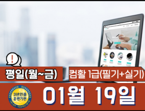 컴퓨터활용능력 1급(필기, 실기)   15:30~18:20 (월~금) 오후